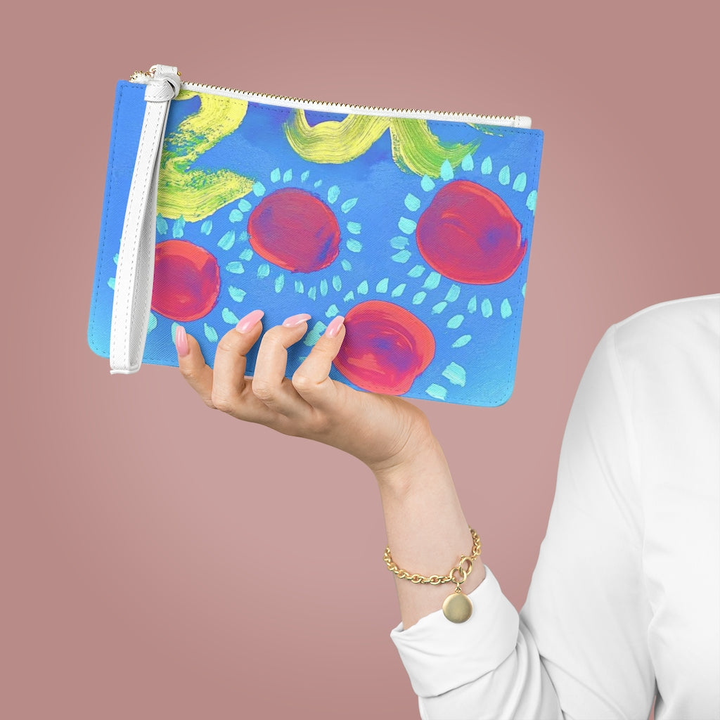 Designed with a loop handle to quickly free your hands, this custom clutch bag is made for the fashionista on the go. It can hold everyday essentials such as a phone, wallet, and keys. It features a zip fastening and a fully lined internal pocket. It is made of vegan leather in the Saffiano pattern finish that was invented by Prada.